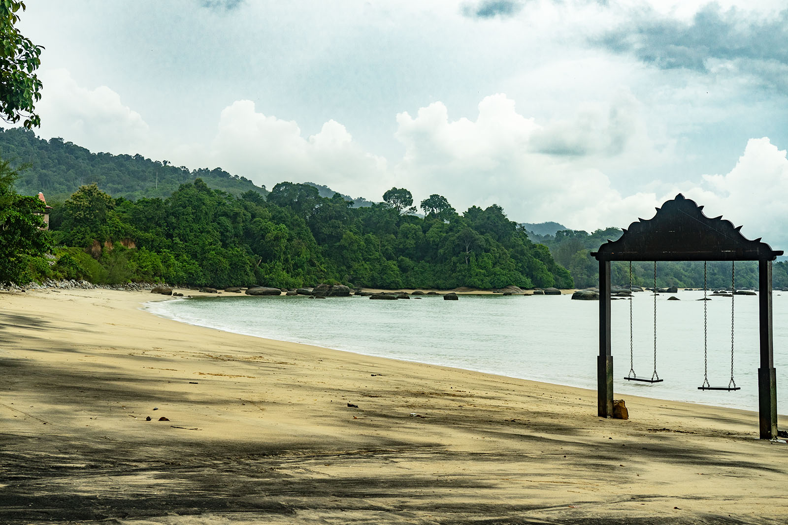Como curiosidad os mostramos la playa Black Sand Beach, al norte de la isla de Langkawi, muy cerca de la zona de los manglares. Es famosa por su arena negra, y aunque no es la más bonita, puedes dar un paseo, hacer unas fotos y recrearte desde el columpio con las vistas, aunque avisamos que a lo lejos… se divisa parte de las instalaciones de una cementera.
