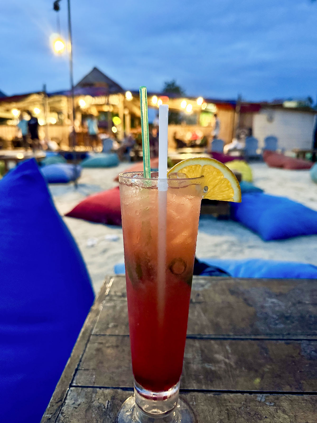 Cuando se oculta el sol podrás gozar del famoso fireshow, un espectáculo con fuego de lo más entretenido y muy extendido en el Sudeste Asiático. Hay varios chiringuitos a lo largo de la playa para presenciarlo pero nuestro favorito es KALUT CAFE BAR por sus buenos cocktails, su cerveza fría y sus ricas hamburguesas y la música es bastante buena para lo encontramos por aquí.
