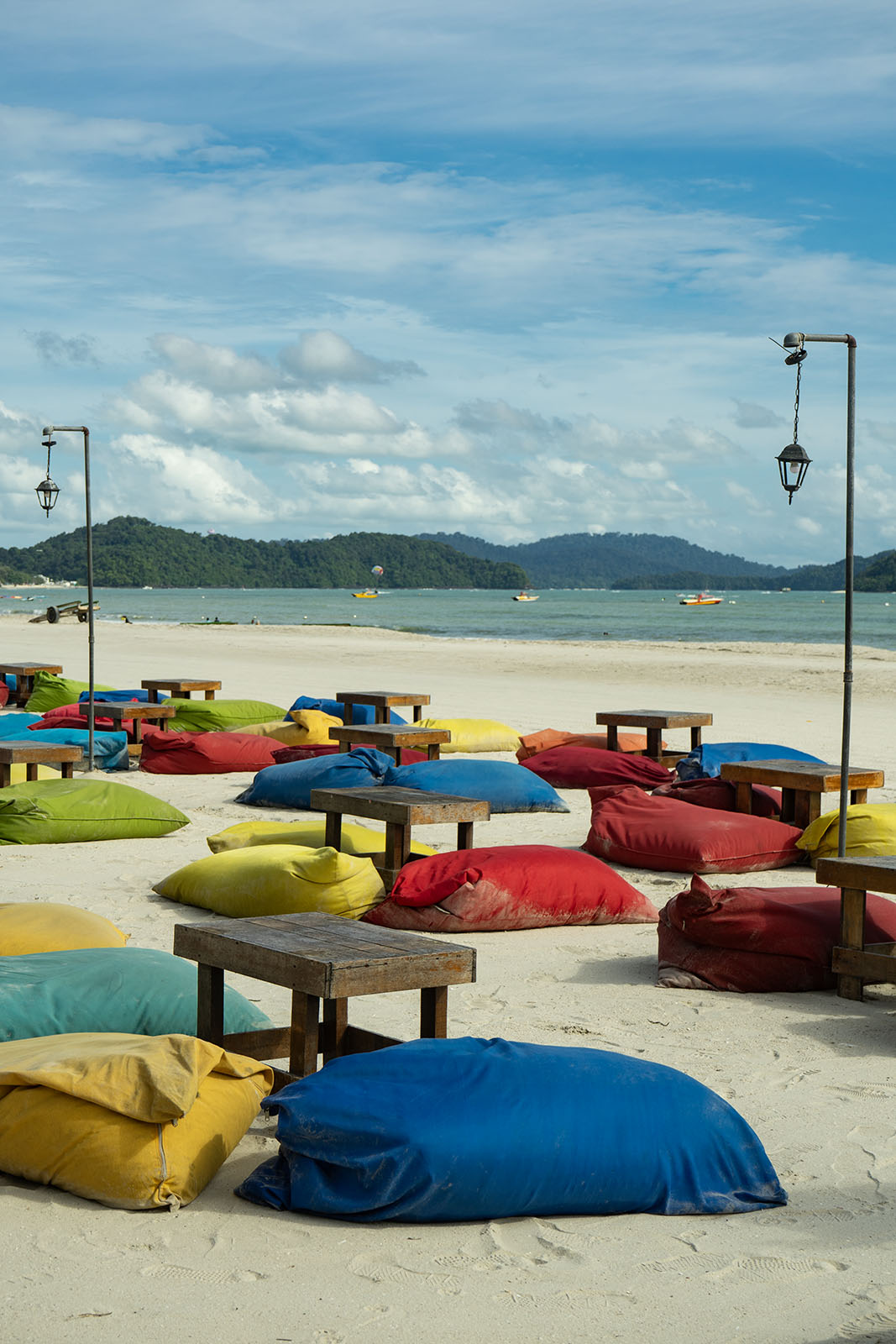 Pantai Cenang es una playa urbana sin más pero no te pierdas los atardeceres desde los chiringuitos sobre la arena donde también podrás contemplar el famoso fireshow al caer la noche. Para moverte puedes alquilar un coche o reservar traslados privados con antelación.