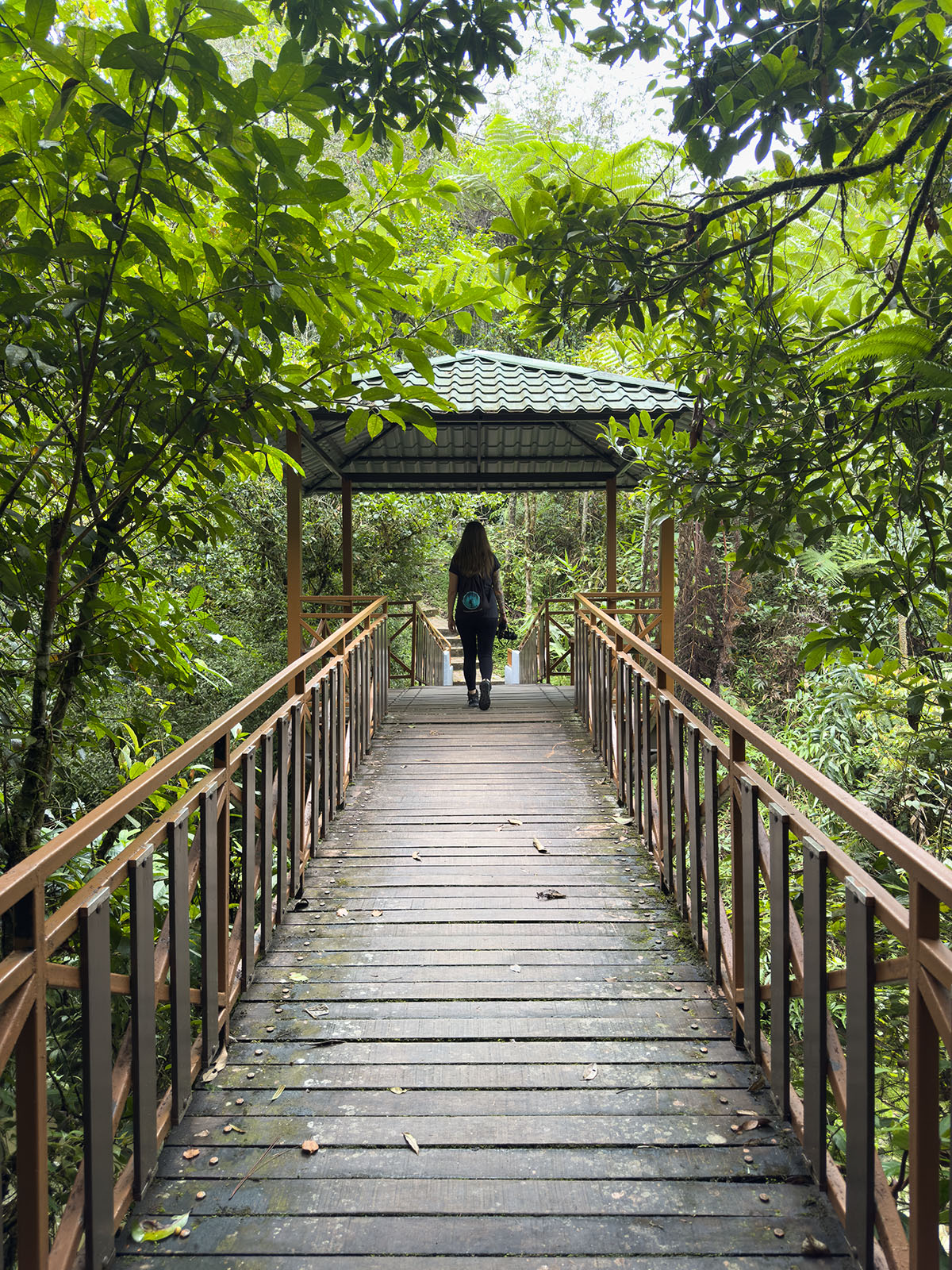 Para los más vagos hay una pasarela que recorre parte del parque en un camino cerrado que pasa por el Canopy Walk con la red de puentes colgantes más larga del mundo en medio de una frondosa vegetación. En algunos puntos tienen una altura de 40 metros con unas vistas increíbles.